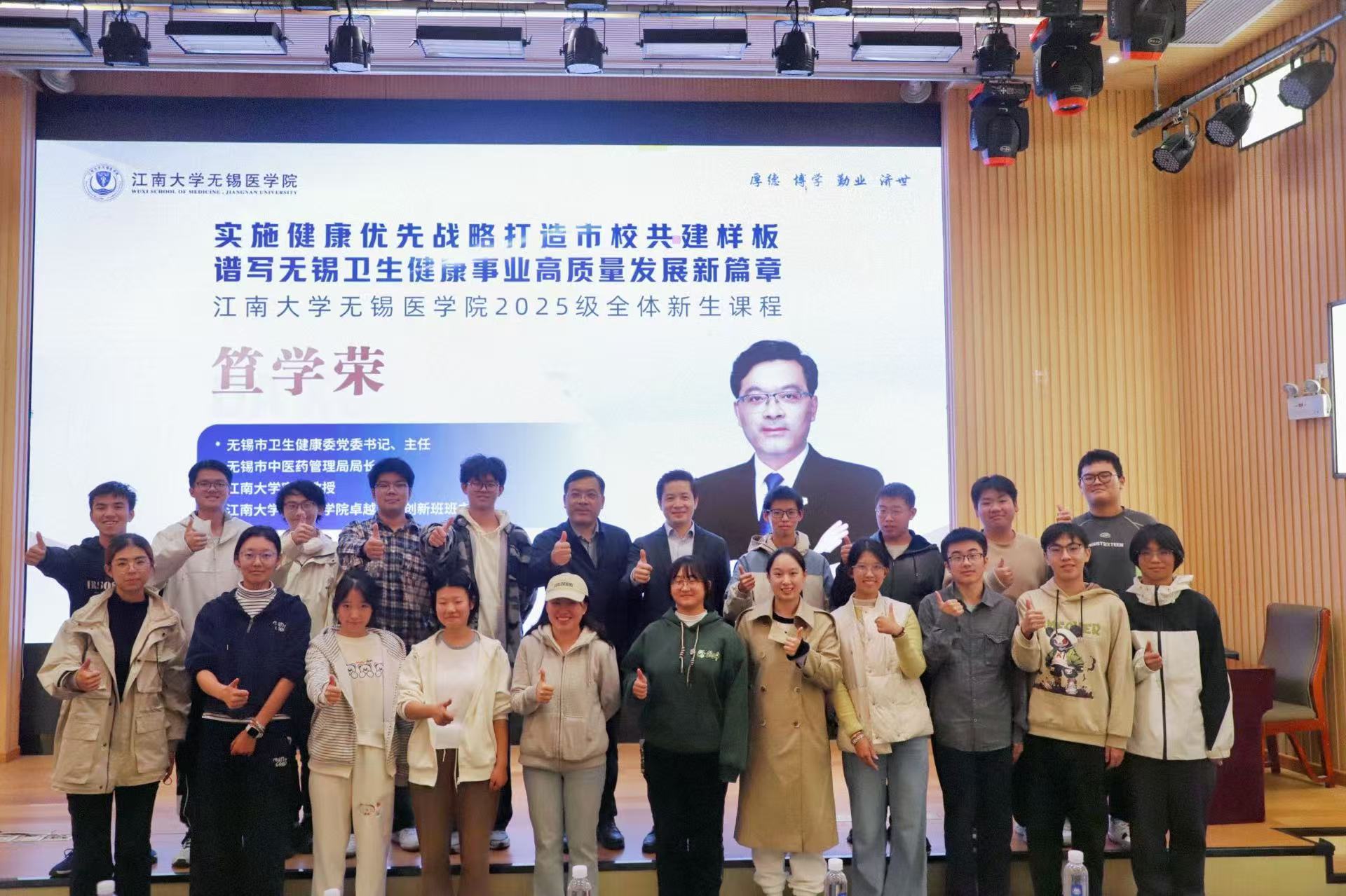 “杏林春暖”大讲堂,为2025级全体本科新生作题为“实施健康优先战略 打造市校共建样板 谱写无锡卫生健康事业高质量发展新篇章”的专题报告。javbus